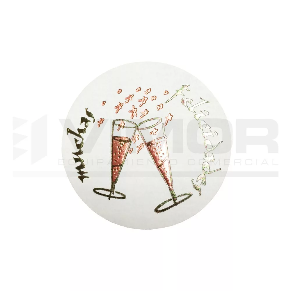 500 Etiquetas adhesiva circular “muchas felicidades”