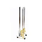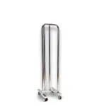 Almacenador metálico para perchas con 4 ruedas, 2 con freno y 2 sin freno. Cómodo para mover de un sitio a otro.88cm de alto. Color cromado.