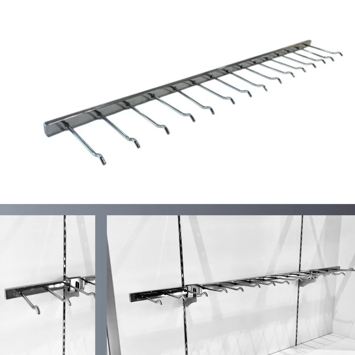 Soporte de  100cm  con 15 ganchos de largo 13cm, para uso 10cm.