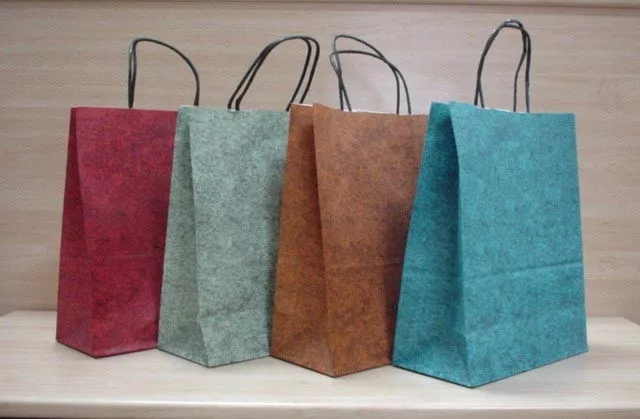 Bolsa de asa retorcida. Varios colores con pintas negras.