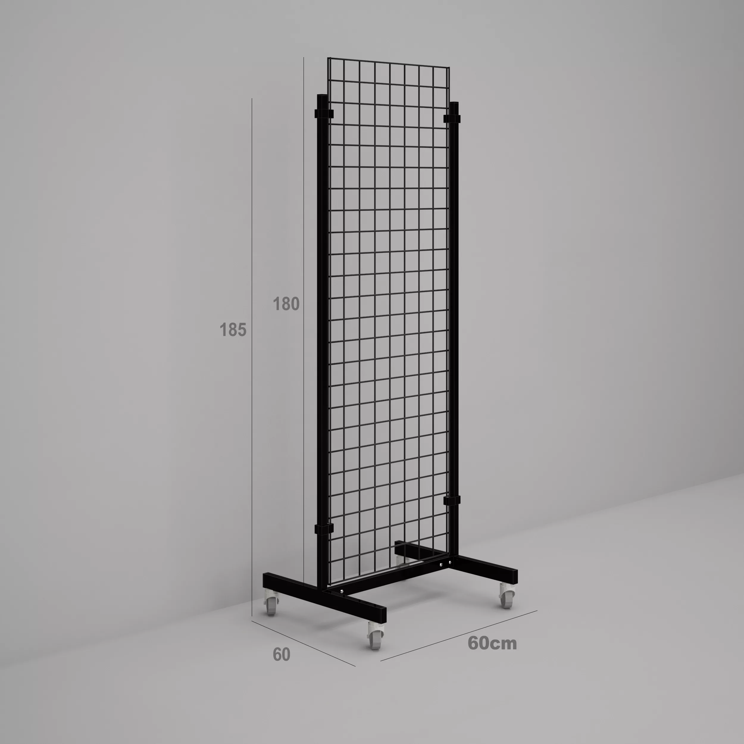 Carro de dos pies de 180cm de altura con malla y ruedas.
