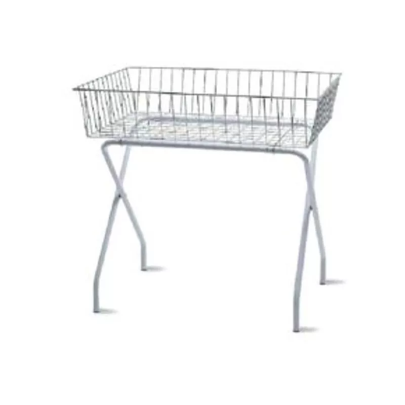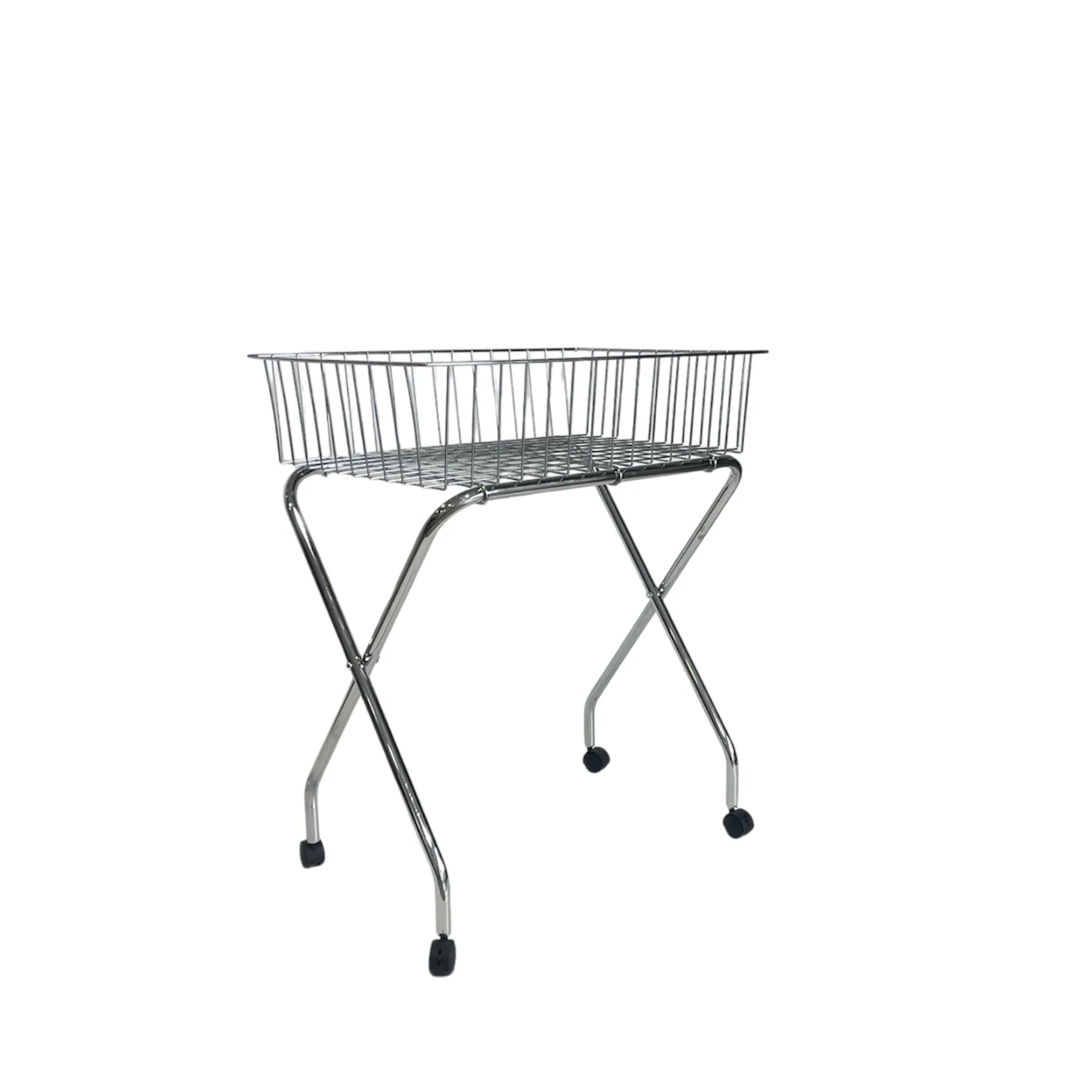 Cesta mesa oferta plegable. Contenedor de oferta metálico. Ideal para lavanderías. Plegable, con ruedas de 50mm. Color cromado.