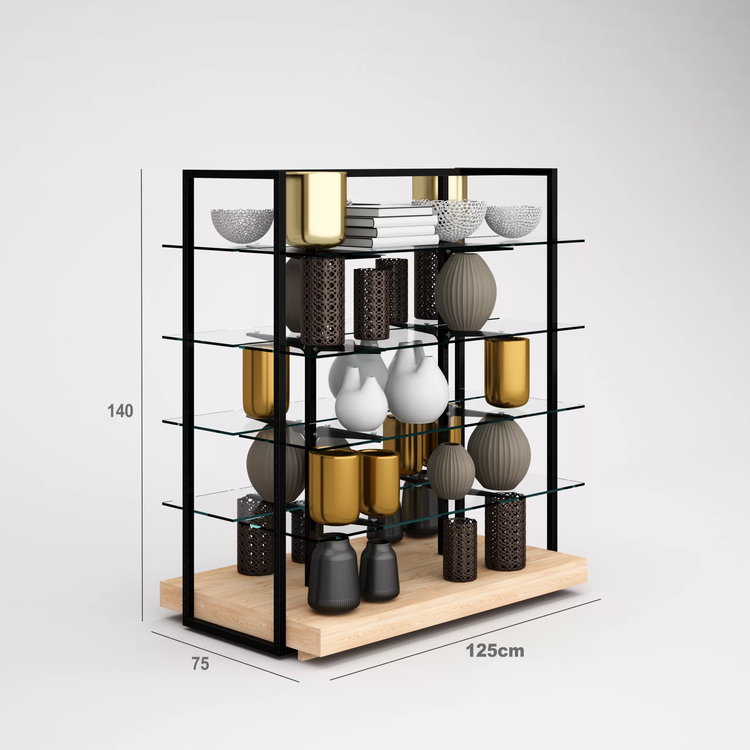 Complementos Góndola SQ, estantes de cristal y Tarima (Tubo Cuadrado25mm)