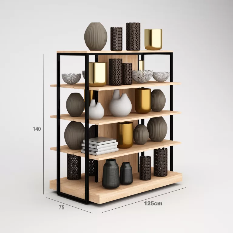 Complementos Góndola SQ, estantes de madera, fondo liso y Tarima (Tubo Cuadrado25mm)