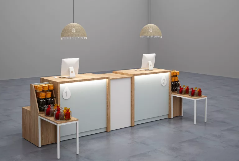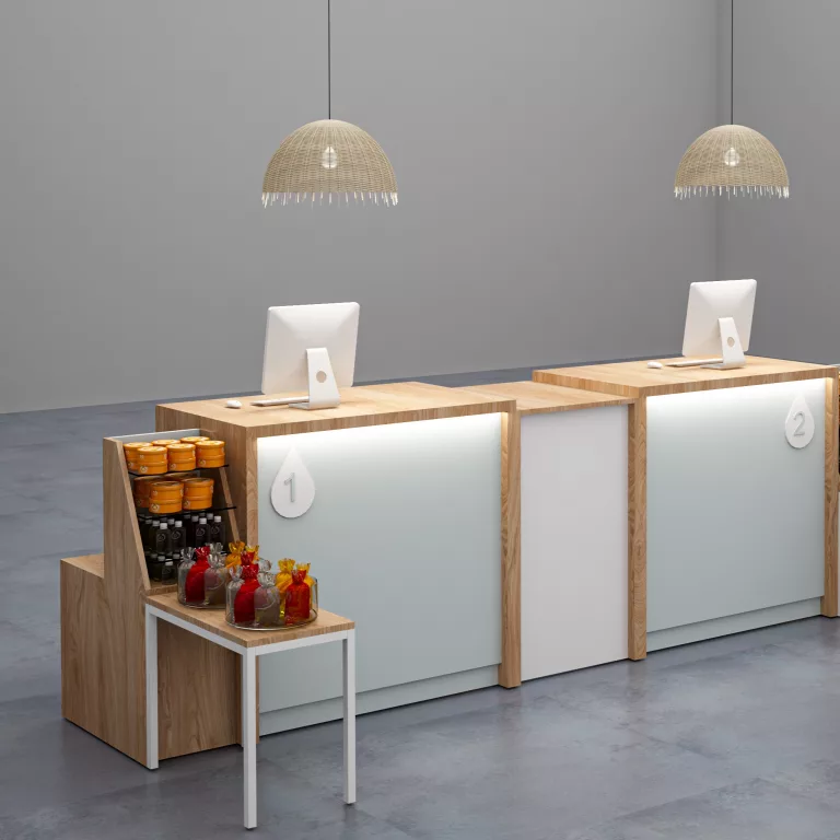 Presentamos nuestro mostrador de recepción para hoteles, una pieza diseñada para combinar estética, durabilidad y funcionalidad, pensada especialmente para ofrecer una experiencia de bienvenida profesional y acogedora en cualquier tipo de establecimiento hotelero.