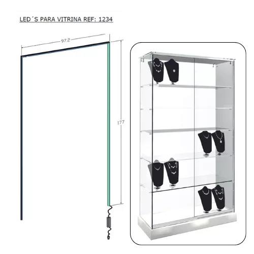 Iluminación led lateral y superior para vitrina 1234