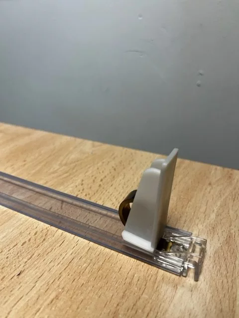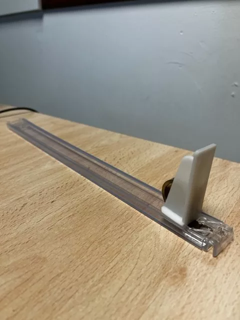 Empujador con fuerza 6N. Carril transparente y parada en color blanco.