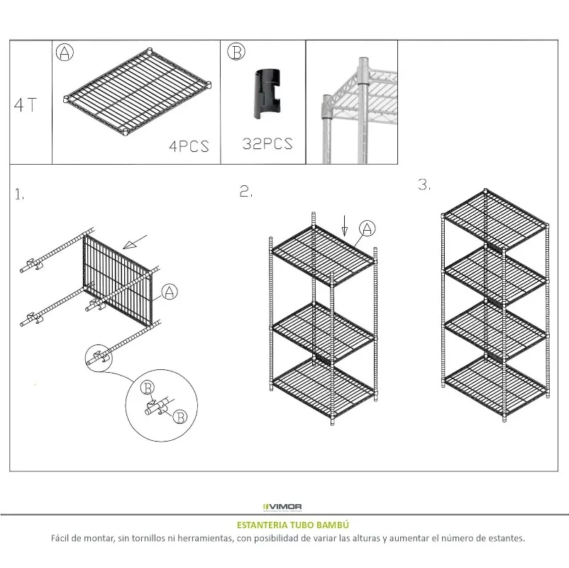 Estante rejilla *Eco* 91x46cm 60/70kg tubo bambú-cromado