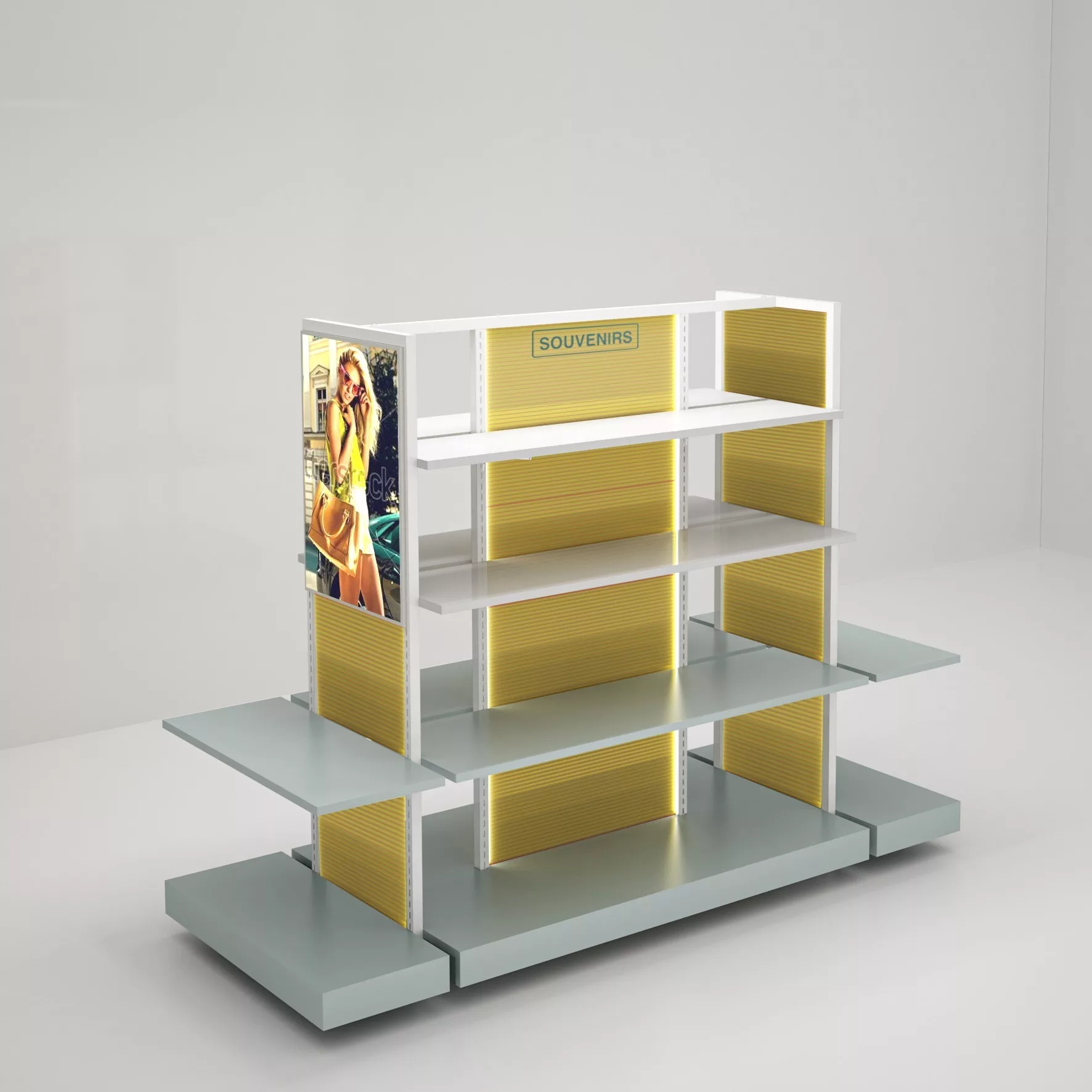 Estantería góndola SQ en blanco con estantes especial souvenirs