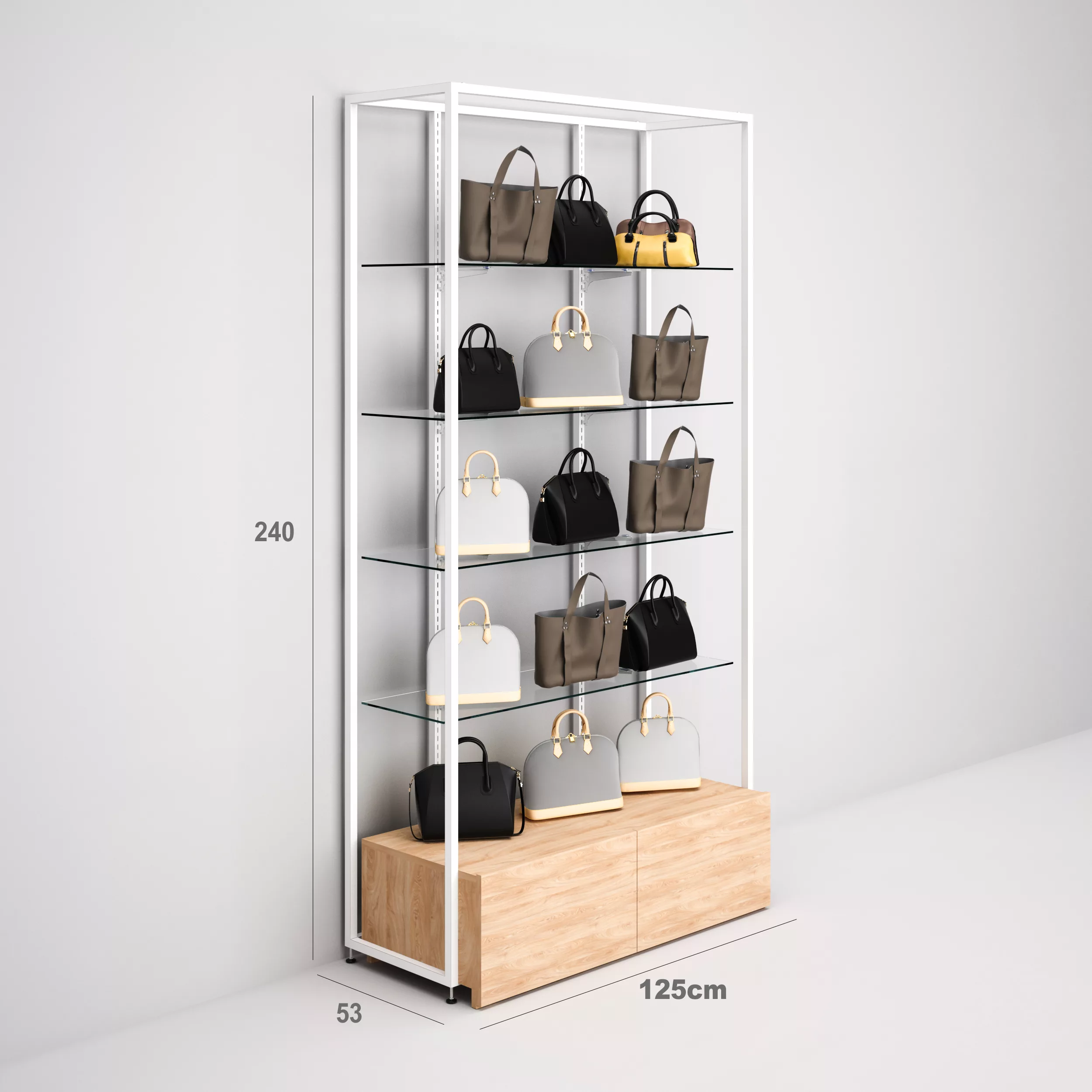 Estantería Modular SQ con estantes cristal y cajonera (Tubo Cuadrado25mm)