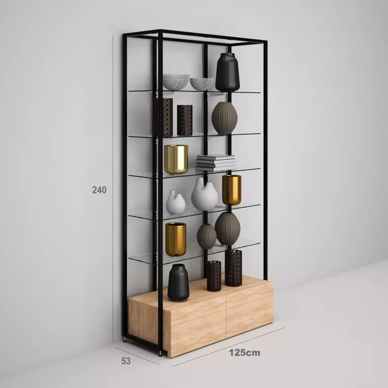 DP-303 Estantería Modular SQ con estantes cristal y cajonera (Tubo Cuadrado25mm)