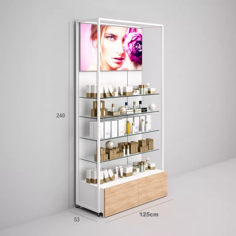 DP-303-7-F Estantería Modular SQ con estantes cristal y cajonera (Tubo Cuadrado25mm)