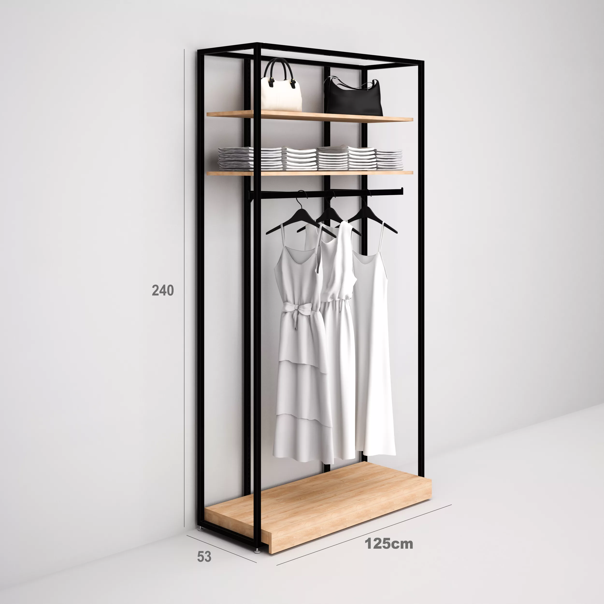 Estantería Modular SQ con estantes, barra colgadora y Tarima (Tubo Cuadrado25mm)