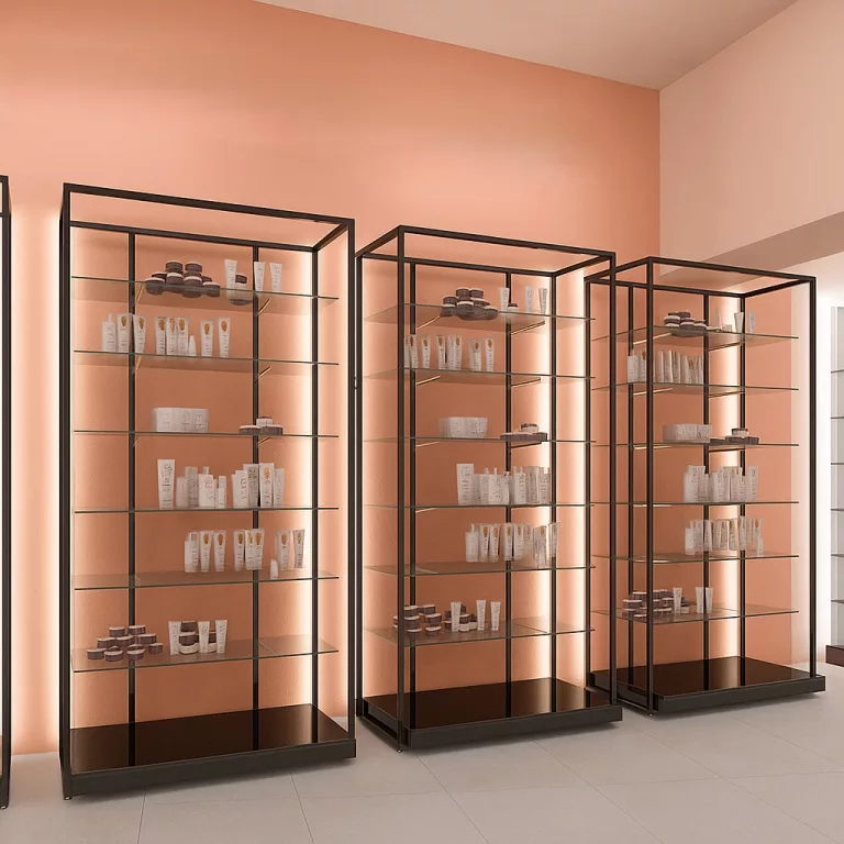 Tres estanterías de estructura autoportantes en tubo cuadrado de 25×25.