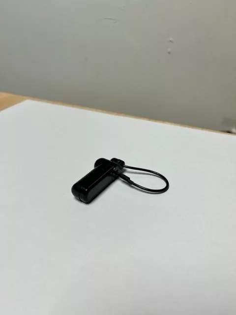 Etiqueta RF, para productos pequeños, tipo joyeria. Captación 1.60-1.80m. Incluye latiguillo en la etiqueta. Color negro.