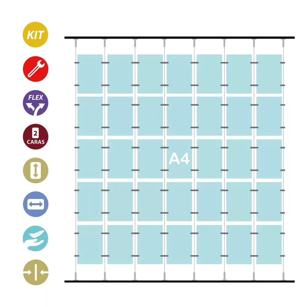 Expositor 35 portacarteles din A4 vertical 35A4V sistema cable