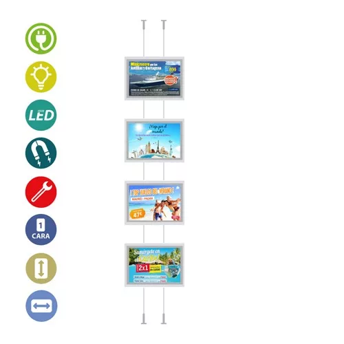 • Portacartel A4 led con 4 sujeciones horizontal: 4uds