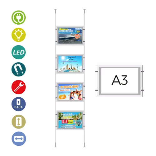 • Portacartel A3 led con 4 sujeciones horizontal: 4uds