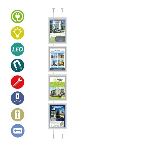 Expositor 4 portacarteles led “eco” sistema cable A4 vertical 12v-9,6w