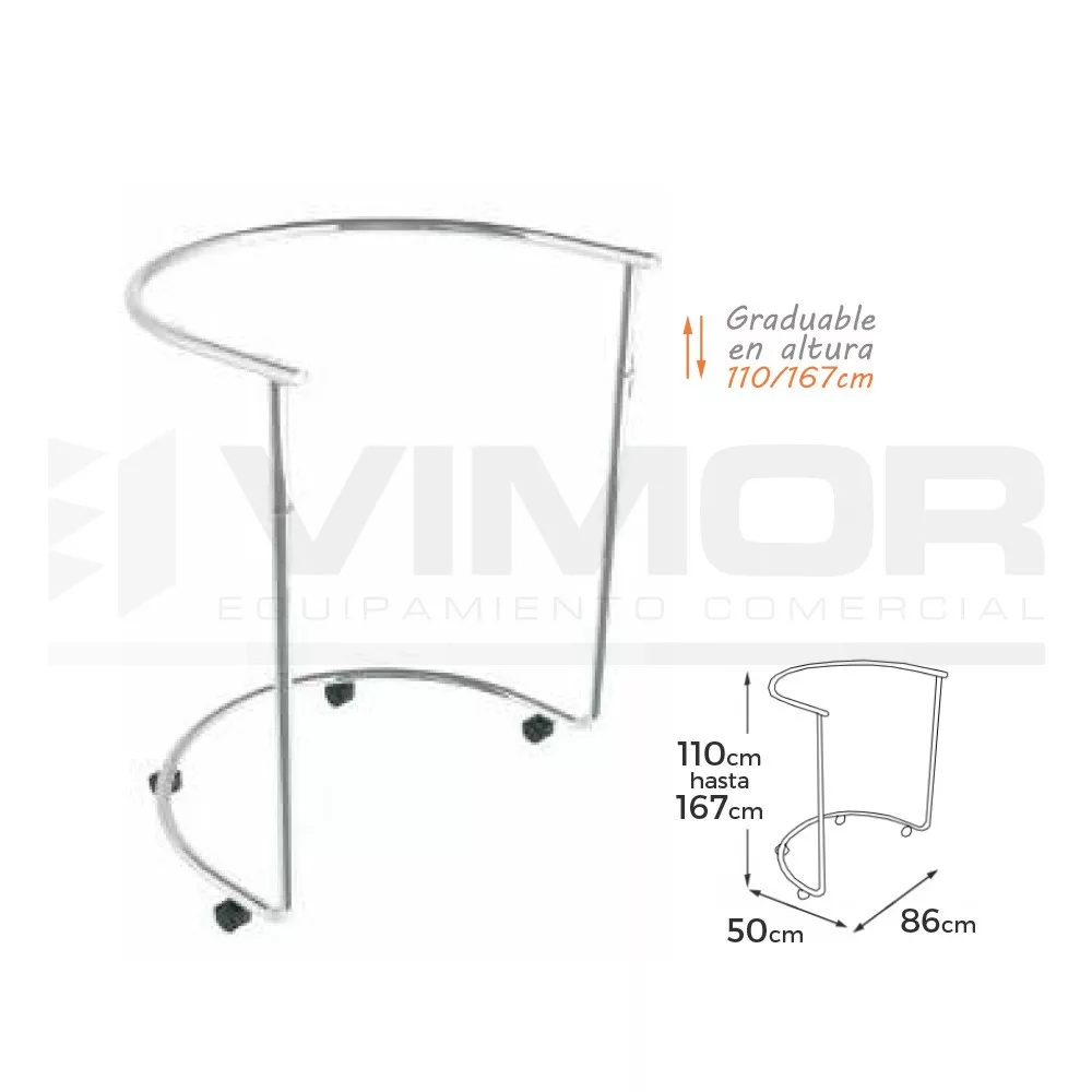 Expositor luna curvo con ruedas cromado 110/167cm 84cm. diametro.