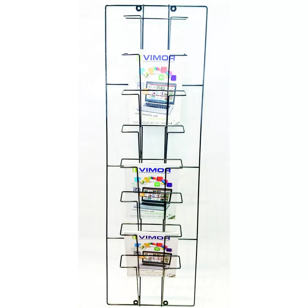 Expositor revistas y catálogo con 8 bolsillos para pared. Varilla metálica.