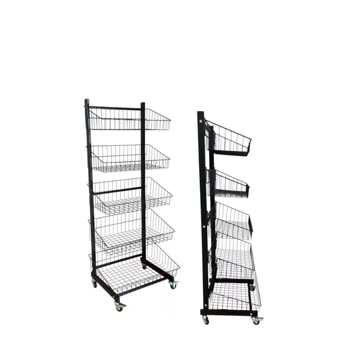 Expositor con ruedas de 5 cestas.