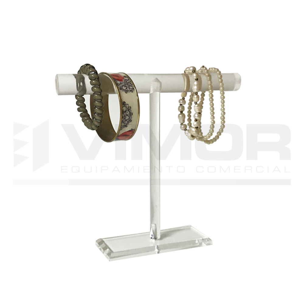 Expositor de metacrilato para bisutería. Barra superior lisa. Color transparente.
