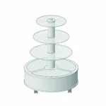 Con base en madera, columna central metálica y 3 alturas de estantes de cristal redondos. Posibilidad de varias medidas y alturas.