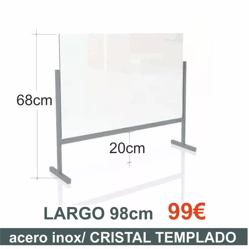 Mampara mesa/mostr. acero inox./cristal templado 98cms