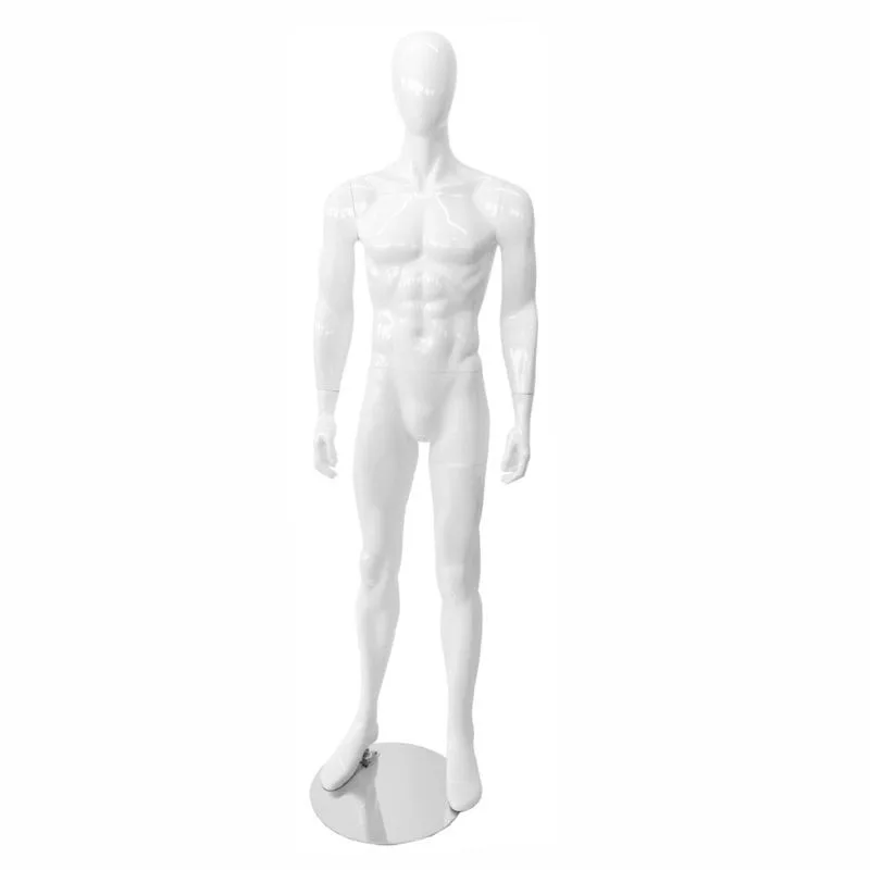 Maniquí caballero con cabeza sin rostro. Blanco brillo