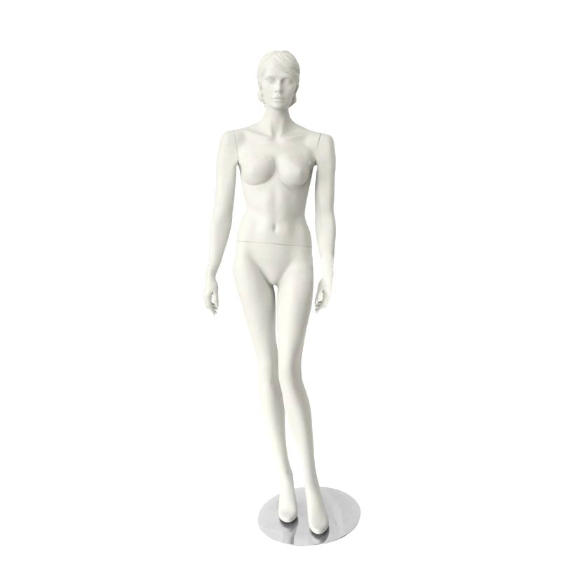 Maniquí señora con cabeza pelo esculpido. Blanco mate