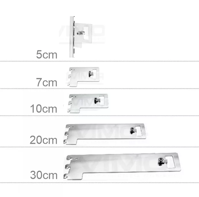 Ménsula lateral cerrado para barra de 32x14cm, incluye tornillo de fijación de la barra. Ménsula para sistema de cremallera. Cromado.