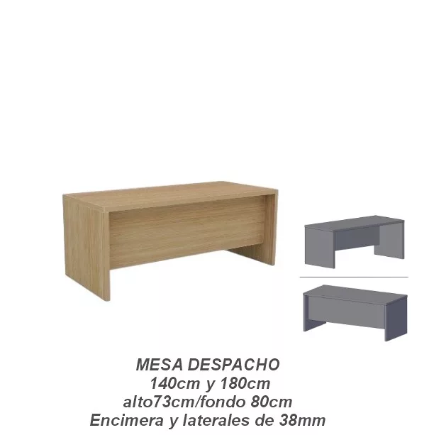 Mesa despacho encimera y laterales de 38mm, 73cm alto y 80cm fondo