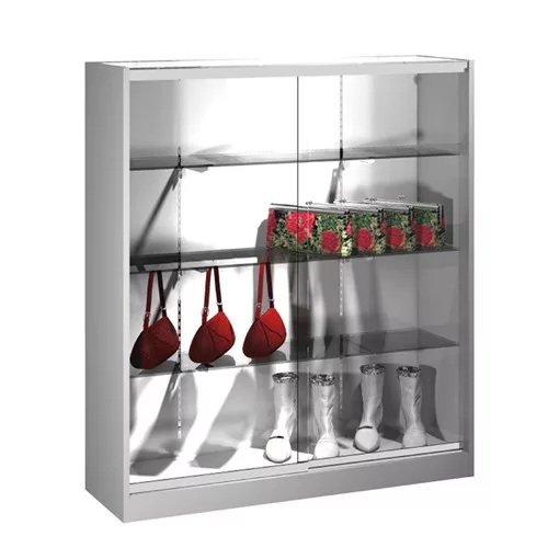 Modelo Góndola vitrina Aruba 124cm fondo liso con cremalleras