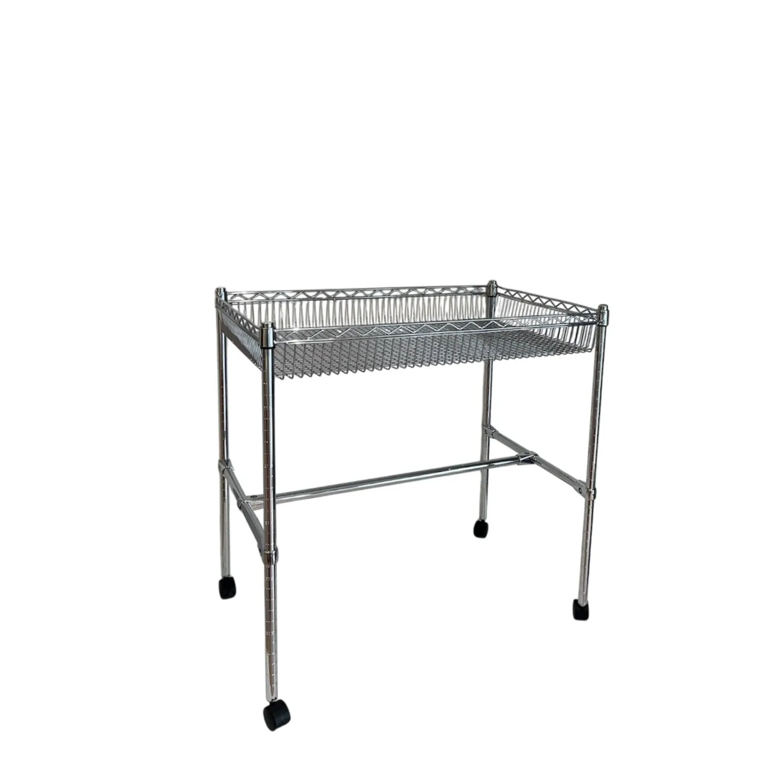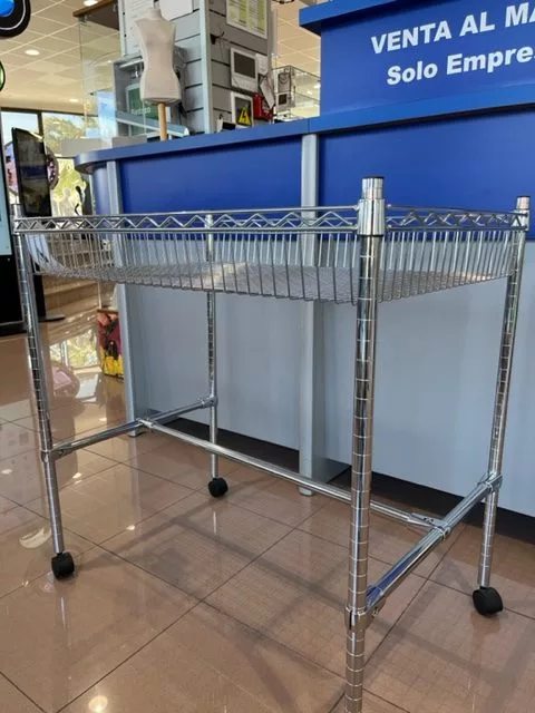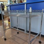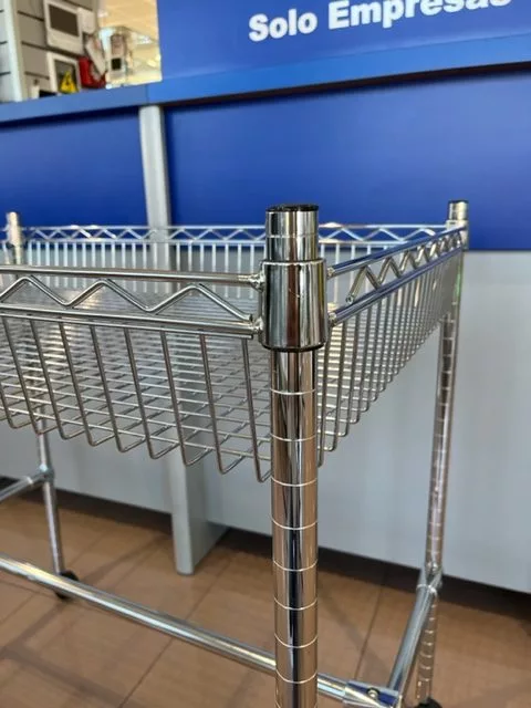 Carro con una cesta tipo bambú, ideal para lavanderías, con 4 ruedas. Color cromado.