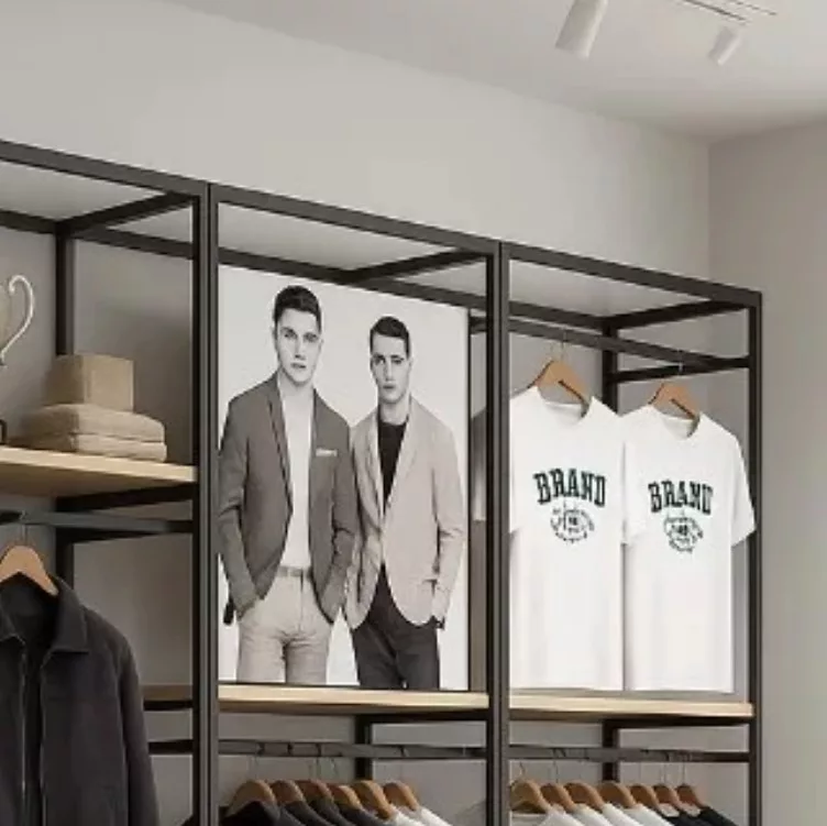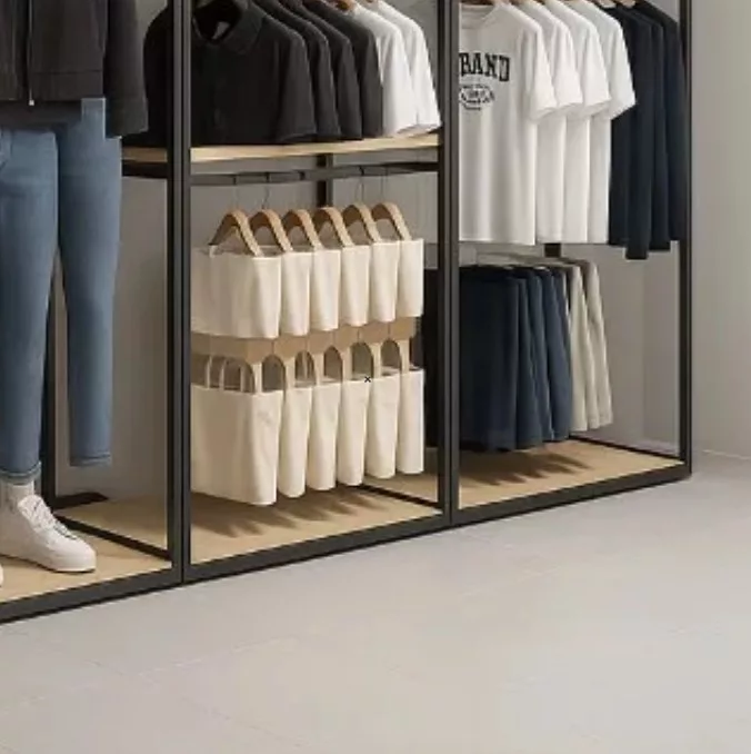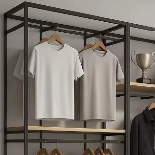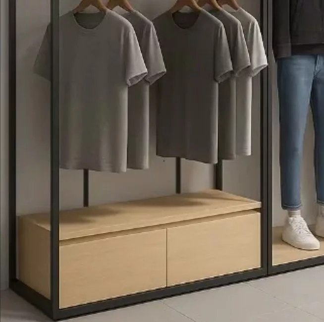Modulo Pared de Estanterías SQ con barras colgadoras, estantes y cajonera (Tubo Cuadrado25mm)