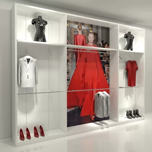 Mural Génova (3 módulos 120-180-120) estantes y barra confección