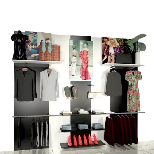 El sistema modular propone las soluciones más elegantes y adecuadas para tiendas de calzado, confección, complementos y deportes.