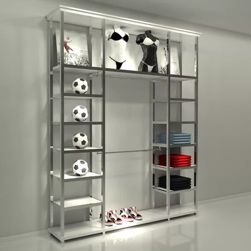 Mural Florencia (3 módulos 60-120-60) 2 estantes 1 modulo doble barra confección blanco