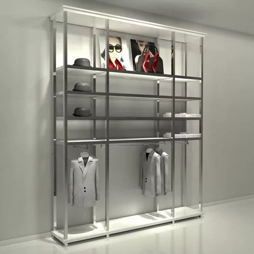 Mural Florencia 3 módulos 60-120-60 combinando estantes y barra confección blanco