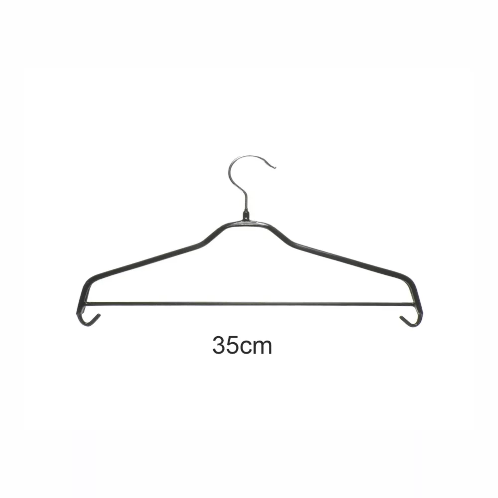 Percha antideslizante para conjuntos con ganchos. Ideal para conjuntos, camisas, pantalones, faldas 35cm de largo. Color negro.