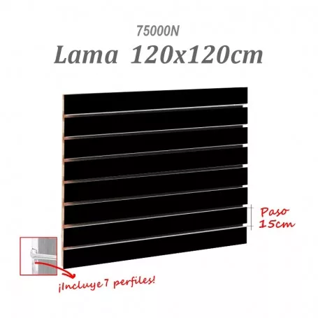 Panel lama eco superior paso 15 con 7 perfiles 120×120 negro