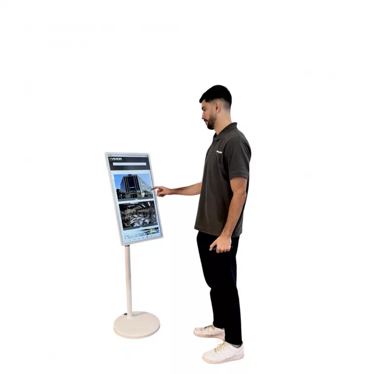 Pantalla LED digital Táctil LCD 32″ para video e imagen. La pantalla de alta resolución proporciona efectos visuales de alta imagen. Pantalla Full HD 32″. Cristal templado anti golpes. Sistema operativo Android 12. Permite utilizar ratón y teclado en el puerto USB. Admite conexión Wi-Fi para actualizar los archivos y el software fácilmente. Base con ruedas.