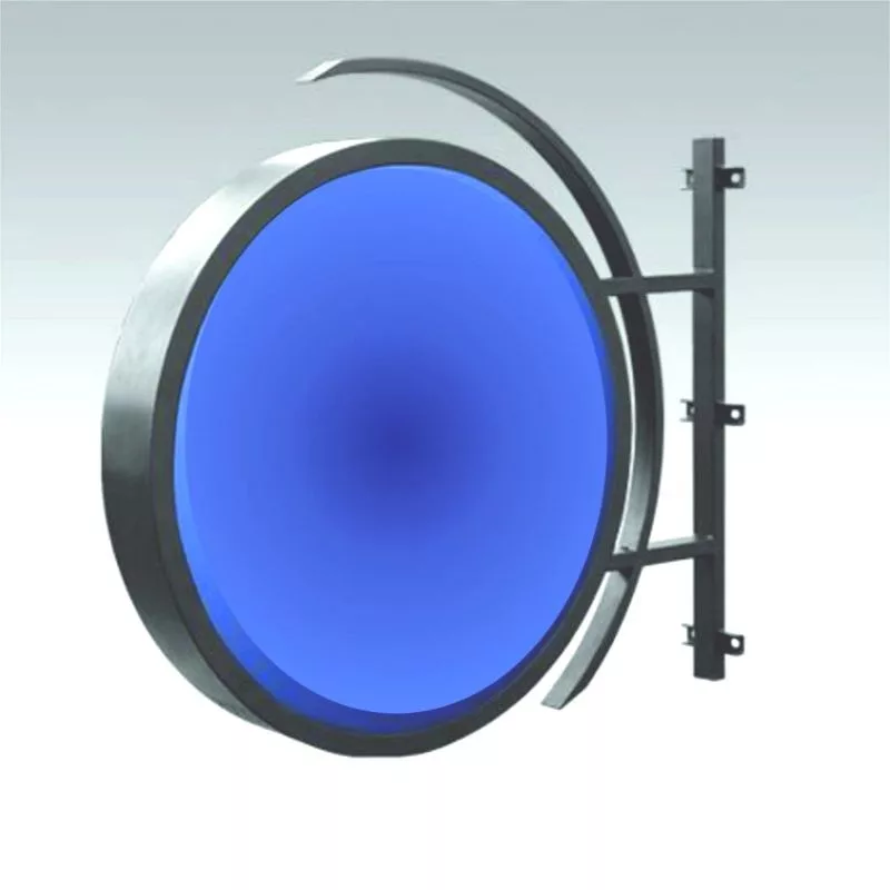 Pantalla led logo para video e imagen 65x65x11cm. La pantalla LED LOGO es una pantalla LED a todo color RGB exterior de forma redonda, que puede reproducir video e imagen, con módulo LED de alta calidad a doble cara, fuente de alimentación UL / CE integrada en el interior. Es un excelente impermeable de alto brillo. Producto de señalización del lado de la calle, capaz de cargar contenido inalámbrico por WIFI y por cable para la señal de la tienda; el mensaje del evento y la promoción se muestran a la hora preestablecida.