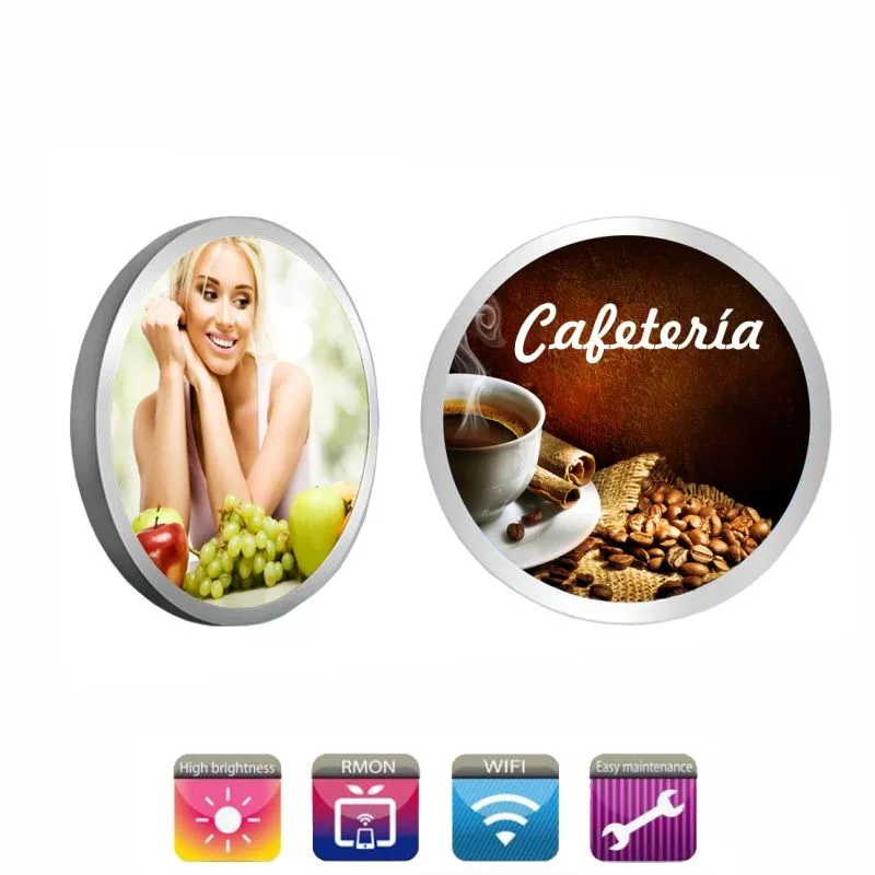 Pantalla redonda LED imagen y TV. Moderno diseño circular. Estructura de acero resistente. Montaje a pared. Soporte de conexión Wi-Fi / Ethernet.