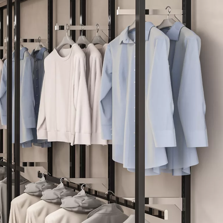 Cada una lleva 2 tubos traseros ranurados para cualquier accesorio para colgar o poner estante en ambos lados. Distancia entre tubos ranurados de 60cm.