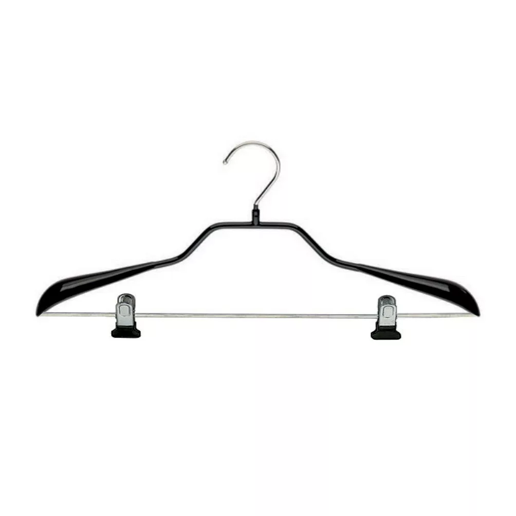 Percha antideslizante con hombreras y pinzas. Ideal para conjuntos, camisas, pantalones, faldas 40cm de largo. Color negro.
