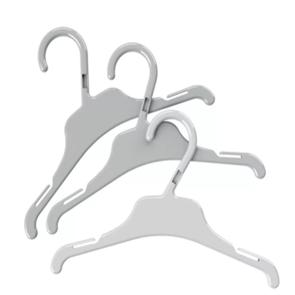 Percha de plástico para camisas infantil. 36cm de largo. Color blanco.