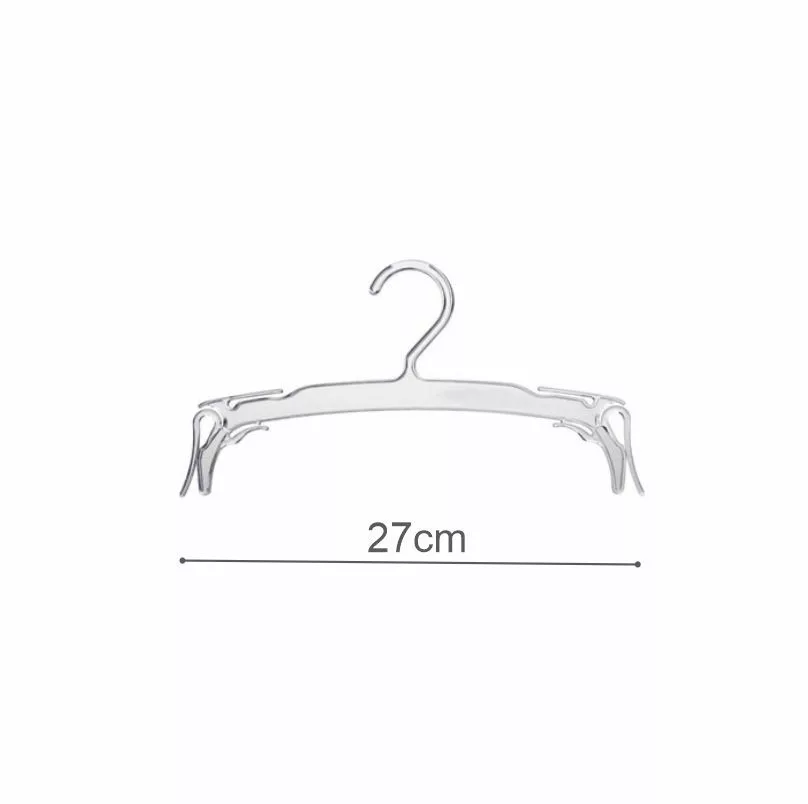 Percha plástico ideal para lencería. 27cm de largo. Color transparente.