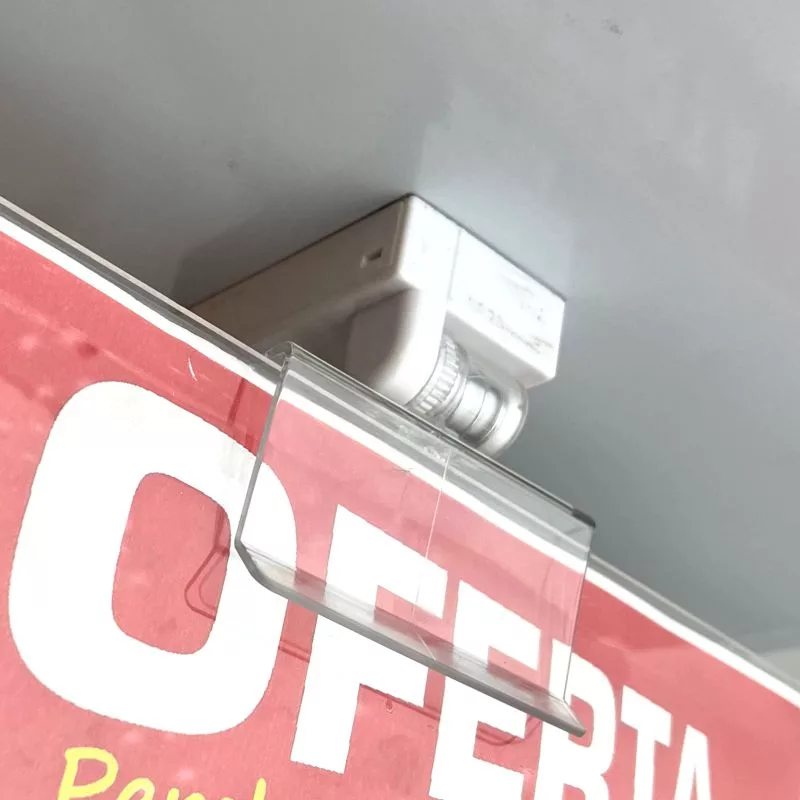 Ideal para usarlo en comercios o almacenes y colocar carteles de manera sencilla, flexible y rápida en paredes, postes o debajo de los estantes y sin necesidad de taladrar  o usar tornillos.